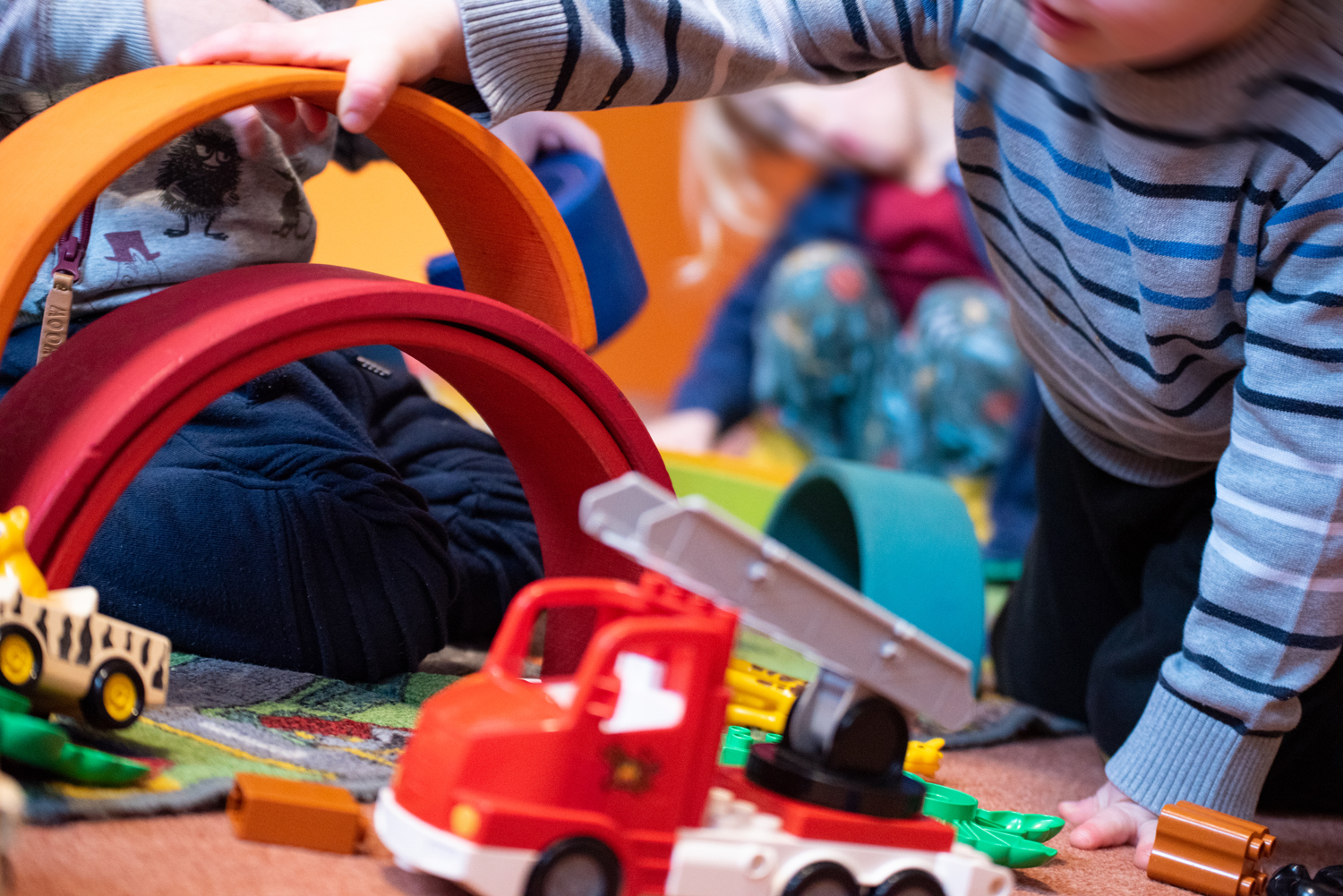 Im Erdgeschoss befinden sich die Räumlichkeiten für unsere U3-Kinder, bestehend aus einem Bewegungsraum, einem Bauraum, einer Puppenecke sowie einem Leseraum. Je nach Wunsch und aktuellem Projekt, können die Kinder wählen, in welchem Raum sie sich aufhalten möchten.